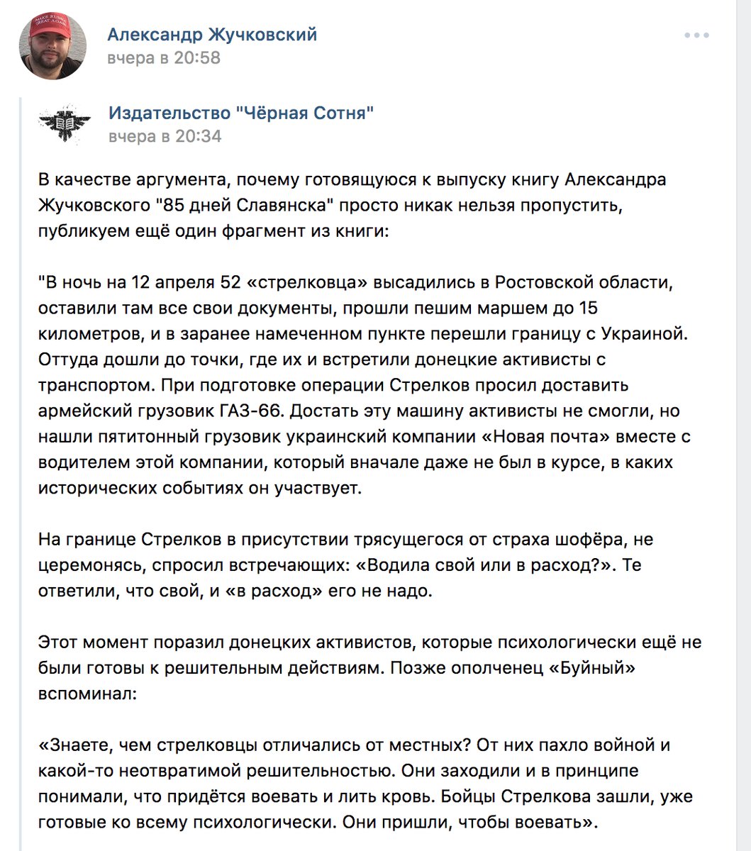 Цитата (Pampa @ Июл 1 2018, 11:59) Подумаешь водителя в расход. А чо такова? З.ы. Жучковский это кто? Бывший член националистического, ультраправого экстремистского (признано судом РФ) ДПНИ - внезапно - потом ставший каким то координатором помощи Донбассу. К тому же он был в числе первых вошедших в Донбасс добровольцев - наверное вместе с Гиркиным. Кстати в свое время Жучковский был бооольшим поклонников украинских фофыстов из "Свободы". Ну в общем классега. -------------------- Такие как ты исподтишка тролят патриота © Madiev.