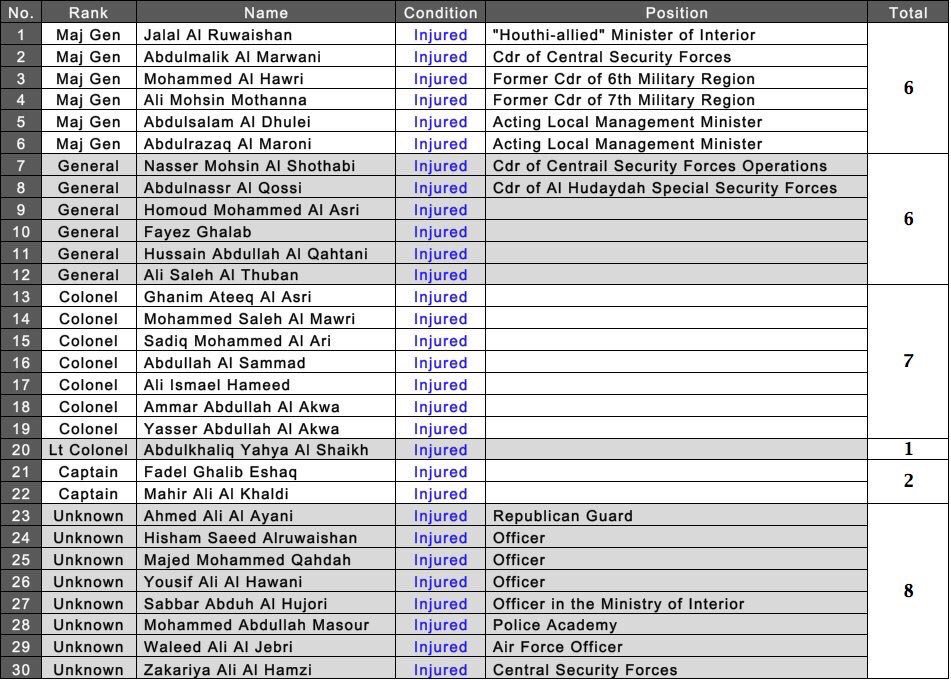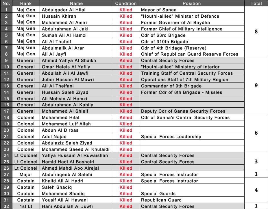 Дополненный список завернутых хуситосалеховцев в поминальном зале. 17 генералов убито!