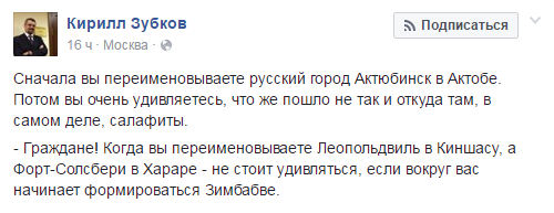 Ну вообще-то, справедливости ради, Актюбинск не русский город - Ак - белый, тюбе - холм. Русский город назывался Белохолмск - так назывался форт на холме (у холма), название которому дали местные, и то недолго