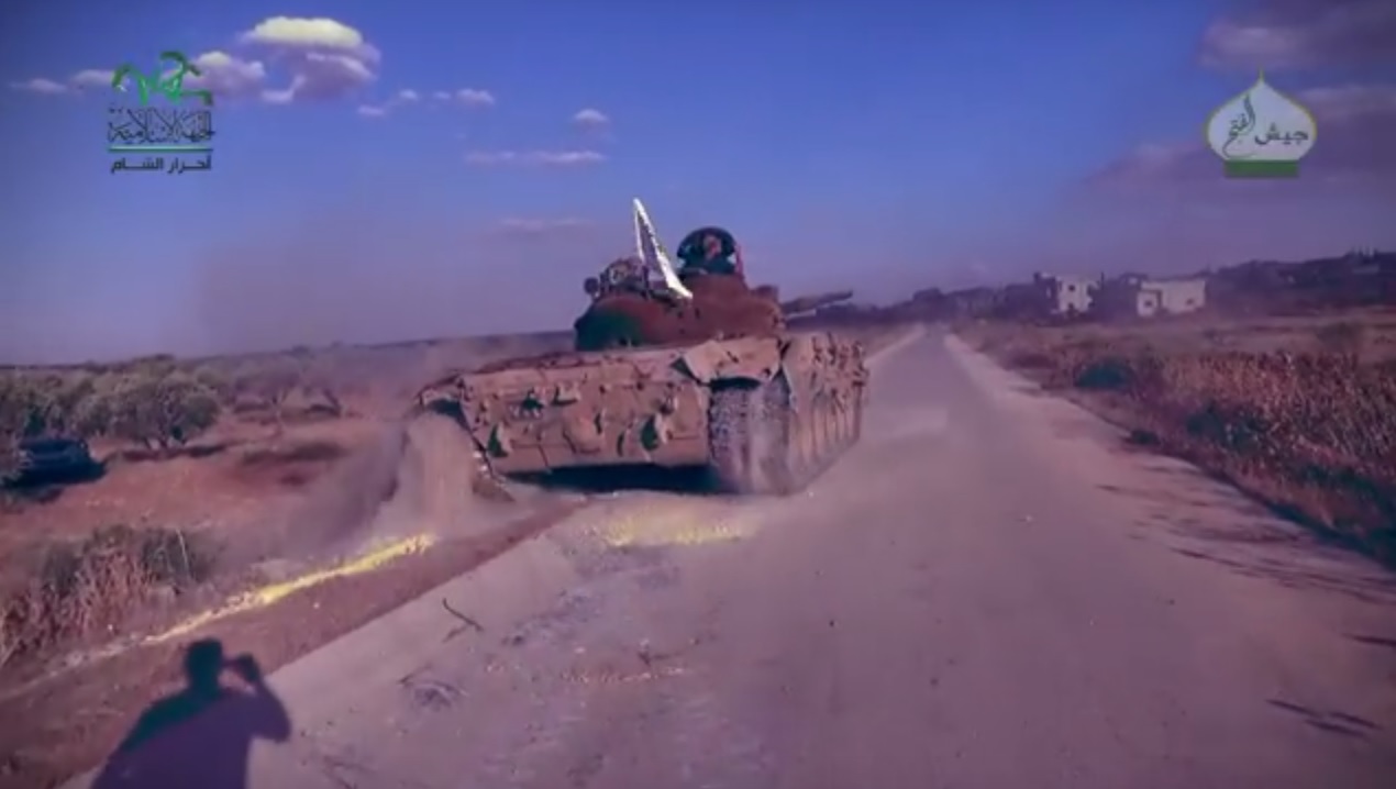 Техника Исламского союза Аджнад аль-Шам - дарайевско-дамасского альянса разных исламистских фракций (не путать с Идлибского-Хамским Аджнад аль-Шамом - это 2 разные группировки, связи между ними нет, просто одинаковое название) в западной Гуте. Танк, БМП, тренировки штурмовых групп.