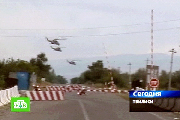 7:00-7:30 Однако это был не единственный налет грузинской авиации в это утро. В статье Ираклия Аладишвили в грузинском журнале «Арсенал», перепечатанной в украинском журнале «Авиация и Время» №6/2008г. сказано: «В боевых действиях принимали участие также ударные вертолеты Ми-24, которые осуществили 4 боевых вылета 8-го, 9- го и 10-го августа. … Кроме того, во время боевых действий потерпел аварию один ударный вертолет (скорее всего Ми-24), экипаж не пострадал». По прошествии года тот же Ираклий Аладишвили публикуя в журнале Арсенал №20 выдержки из интервью с майором авиации Годердзи Элиозашвили, командиром вертолетного подразделения заявил, что : «08 августа на рассвете три МИ-24 с авиабазы Алексеевка перелетели в район Каспи, во второй половине дня к 17 часам из Сенаки прибыло еще три машины. В районе Каспи был оборудован временный аэродром на котором после боевых вылетов пополнялись запасы топлива и б/к. Первый боевой вылет был совершен 09 августа около 10 часов». Однако, в сети inernet имеется видеоролик, датируемый 08.08.2008г. , в котором запечатлены грузинские «Крокодилы», действующие группой по 3 машины. фото 27 А в информационном выпуске украинской телекомпании от 21:20 08.08.2008г. тройка Ми-24 пролетает ранним утром над уже известным постом российских миротворцев, следуя курсом на восточную окраину Цхинвала . фото 28 В еще одном видеоролике , запечатлевшим пролет грузинских Ми-24 над постом миротворцев с другой точки, в кадре слышно ожесточенную перестрелку. фото 29, фото 30 Над городком миротворцев не видно характерного столба дыма от горящей техники, подожженной грузинами после 10:30. Судя по облачному небу, грузинские вертолеты появились в районе Цхинвала еще ранним утром 8 августа. Исходя из этого, можно предположить ошибку в статье Аладишвили 2009г. (сознательную или намеренную) о дате первого вылета грузинских Ми-24. Однако, имеется информация, что примерно в это же время осетинская ПВО (ЗУ-23-2), расположенная примерно в районе Тквернети (Квернет), обстреляла одиночный Су-25, не открывавший огня. Возможно, это был Су-25 с отказавшей системой управления оружием, вылетевший для удара по Джаве. В разгар боя позиции осетинских зенитчиков подверглись удару НУРС, выпущенных с грузинских вертолетов, среди военнослужащих имелись раненые и возможно убитые. Не исключено, что говоря о налете грузинской авиации, Марат Кулахметов имел ввиду именно этот эпизод. Остается неясным, почему этот эпизод замалчивается официальными грузинскими властями. Можно предположить, что при передислокации на передовую площадку, тройка Ми-24 несла боекомплект и нанесла удар по позициям осетин. Нажмите для увеличения Присоединённые изображения Присоединённые файлы