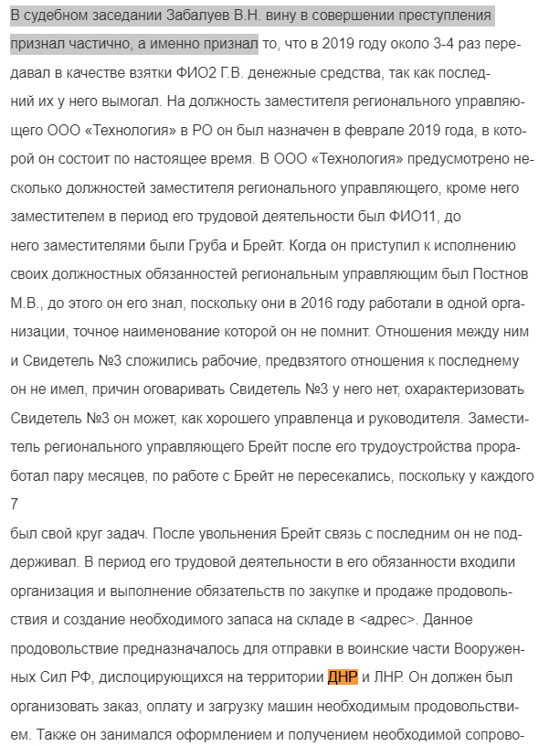 Цитата а также массовых неинфекционных заболеваний (отравлений) личного состава Вооруженных Сил, связанных с нарушениями санитарного законодательства, допускаемыми работниками ООО «Технология» и иных коммерческих организаций, осуществляющих питание военнослужащих на территории Южного военного округа Там же в приговоре, суд не знал просто кто травится и искренне заблуждался(тм) Цитата ему было известно о том, что на вышеупомянутом складе работает его подчинен- ный офицер ФГКУ «1002 ЦГСЭН» МО РФ по имени ФИО5 Цитата Свидетель №3 сообщил, что у последнего состоялась встреча с главным санитарным врачом ФГКУ 1002 ЦГСЭН ФИО2 ФИО6 подполковником ФИО2 Г.В., в ходе которой последний потре- бовал ежемесячно выплачивать ему денежное вознаграждение за не препят- ствование ФИО2 Г.В. и подчиненными, работающими на складе по- ставки товаров в данные республики, угрожая в противном случае макси- мальными проблемами со стороны данного сотрудника.На складе действи- тельно постоянно находился представитель по имени ФИО5, который проверял качество продовольствия. Он не может сказать точно, являлся ли ФИО5 сотрудником Центра. просто офицер МО РФ на ФГКУ центра военной сан эпидем экспертизы проверял продукты, неизвестно для кого и пообещал проблемы - так же видимо искренне заблуждаясь про ЛДНРию ака " данные республики" -------------------- Murem za polskim mundurem