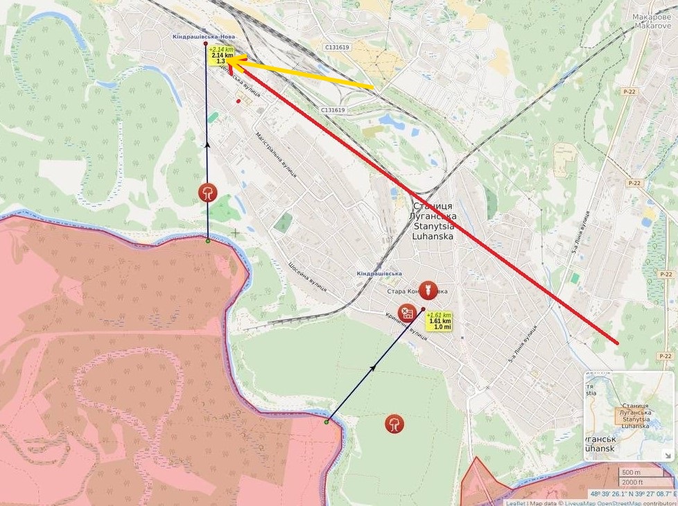 Там еще по станции (несколько сот м севернее) прилетело. В ноябре-декабре туда тоже прилетало, может чего стоит там (может узел связи какой фонит в эфир? или склады?) или эшелоны приходят, чего туда так стараются попадать.