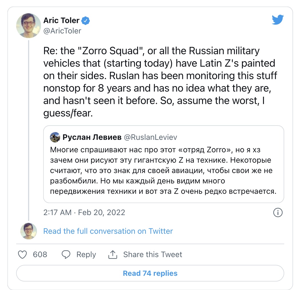 We've confirmed @john_marquee's geolocation (47.2739, 38.3309) which places this video inside separatist territory right on the border with Russia. This appears to be yet another fabricated videos for another false flag. Seeing a pattern yet? https://t.co/ySWiN4KEYL pic.twitter.com/mniiFMZmTm— Eliot Higgins (@EliotHiggins) February 21, 2022 |