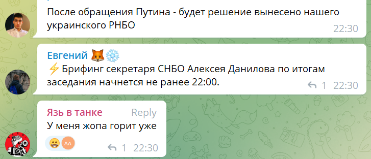 Цитата (Agapit @ Фев 22 2022, 01:32) Президент Франции Эмманюэль Макрон осудил решение президента РФ признать независимость сепаратистских образований на востоке Украины, сообщила пресс-служба Елисейского дворца. Это решение представляет собой "одностороннее нарушение международных обязательств России и посягательство на суверенитет Украины", говорится в сообщении. Французский лидер призвал к созыву экстренного заседания Совета Безопасности ООН, а также принятию адресных европейских санкций. Не зря ездил в москау-дали деду слиться прилично с этой ситуации...крайне обеспокоены и возможно какие-то санкции)))А почему бы не признать не стягивая уеву тучу войск?И джавелинов еще не подбросили тогда... |
