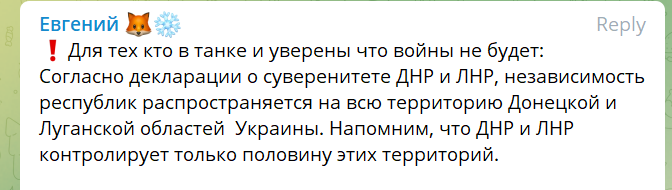 Цитата (kompot @ Фев 22 2022, 01:38) Не зря ездил в москау-дали деду слиться прилично с этой ситуации...крайне обеспокоены и возможно какие-то санкции)))А почему бы не признать не стягивая уеву тучу войск?И джавелинов еще не подбросили тогда... Помнят Саакашвили. Инструкторы-оружие-военное решение. Потому остановили после инструкторы-оружие. |