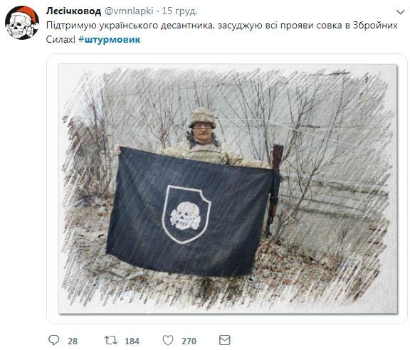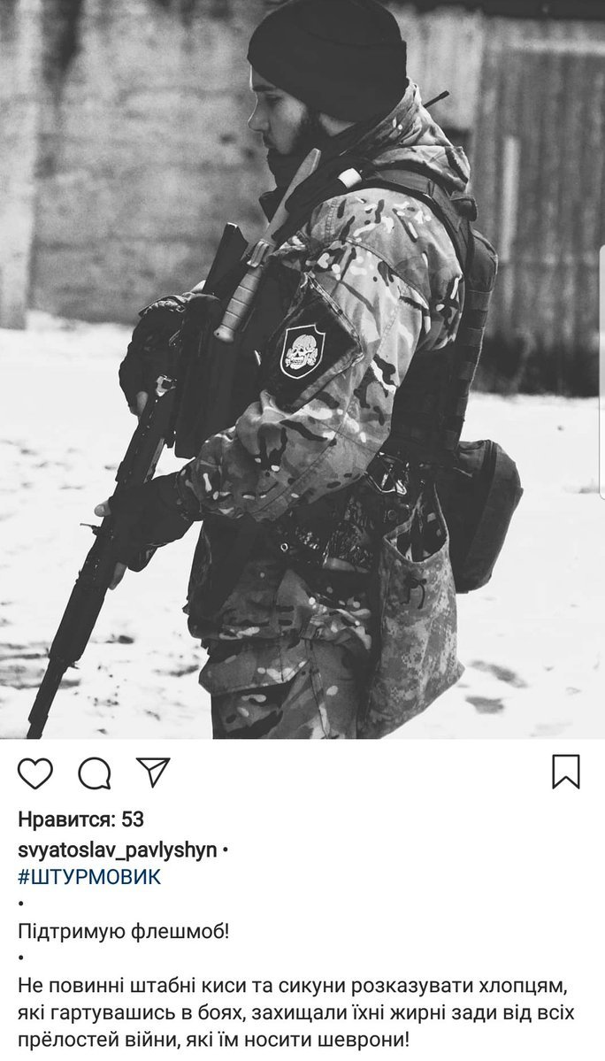 Все помнят историю с десантником с эмблемой Тотенкопф который умудрился сняться рядом с Порошенко и которого потом заставили на камеру извиниться. Как вы думали что сделают после это ВСУшники ну там затихнут, тему постараются замять и забыть и вообще прикинуться ветошью?. Хер там это мудачье ужасно возбудилось и обиделось что их заставляют снимать шевроны СС и тадам ... объявило флешмоб где военнослужащие ВСУ фотографируются с этим шевроном, который на минуточку у многих таки есть по хештегом #штурмовик . Фошизма вна Украине нет.