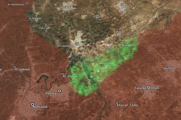 Захваченные территории зелёными в ходе сегодняшнего наступления в Хаме зашли в город Helfaya, до войны 21 тысяча жителей.