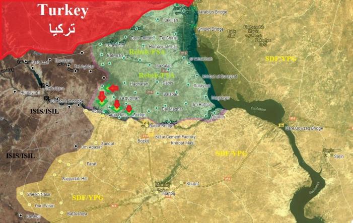 Карта от туркоребелов за 4 -и дня наступа.(Aljazeera TÜRK).