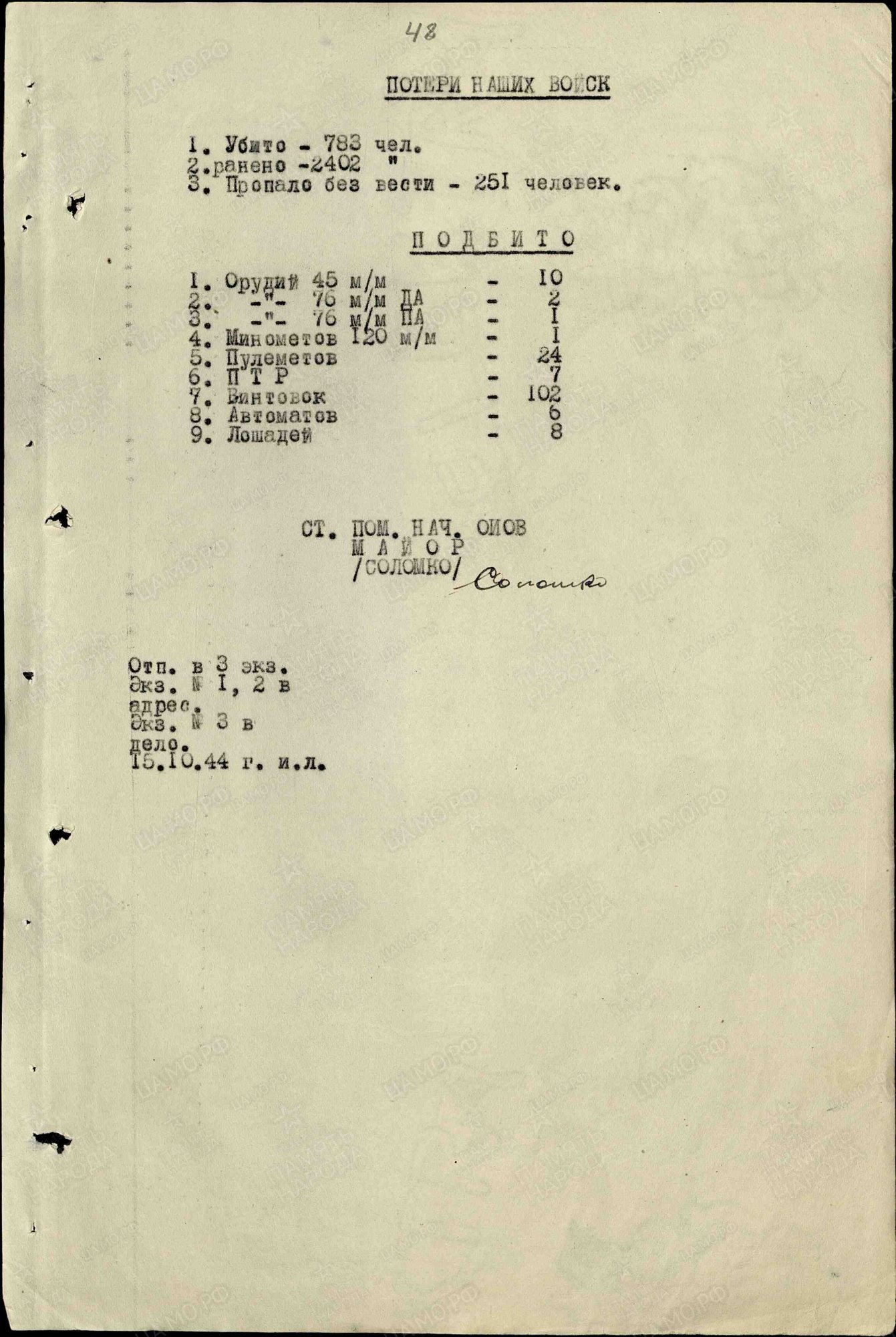 1) А потери ранеными не считова?