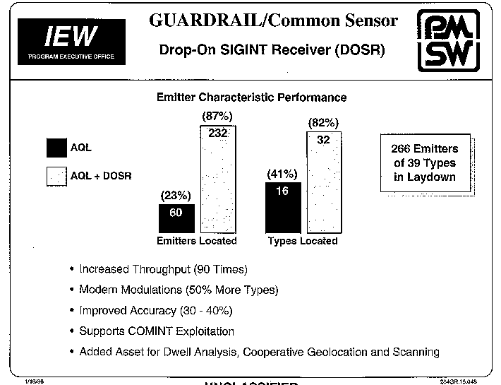 В армии США(не в ВВС) есть система единоверменной автоматизированной самолетной РТР-разведки. Называется - Guardrail/Common Sensor System - GR/CS. В техническом плане основа системы - Communications High Accuracy Airborne Location System (CHAALS). В организационном плане - это разыведывательный батальон: Military Intelligence Battalion (Aerial Exploitation). В котором рота А - это эскдарилья самолетов. Рота B - наземный пункт, связи,сбора и непосредственного управления. А рота C - это обработка и анализ информации, связь по лицниям командной цепочки. Mi Bn (AE) - являлся средством командира корпуса. GR/CS была заказа в 1976 году и ее разрабокта заняла пимерно 13 лет. Первая ,досирийная поставка была в Корее в 1988-89 году, в 1989-91 - две системы были поставлены в два армейских корпуса в Европу. В 90е годы была созданая 2 серия системы, оболее улчшенная и оцифрованная, в 00-х года -3 и 4 серия системы В данный момент армия США обладает 5 всего такими системами - 1 (Европа),3(Корея) а так же 15,204, 224 батальоны (на CONUS). В данный момент 4 из 5 батальонов изъяты из прежних бригад разведки ( которыые поддерижвали разведывательные мероприятия: Южное командование, Сентком/18 корпус и Пасифик конмадование) в новую 116 бригаду https://en.wikipedia.org/wiki/116th_Militar...(United_States) В техническом плане система GR/CS - громоздкая и сложная. Она представляет собою эскадрилью из 12 самолетов, специализированно разработанных именно для этой системы https://en.wikipedia.org/wiki/Beechcraft_RC-12_Guardrail И которые с моментом модернизации системы ( 1 серия, 2 серия в 90-х , 3\4 серия в 00-х) - вновь созданные типы. Из 5 батальонов -одни имеет 1ю серию системы, два -2ю серию , два -3\4. Самолеты единоверменно работают звеном в 3(4) поочердено ( большой штат введен для подменки самолета и организации непрервыной или почти непрерывной разведки). Наземный пункт состаит из 3\4 пунктов связи - по направлению на каждый самолет, и 4\5 трейлеров обработки и обсчета инфомрации (по 1 на самолет+ коллекция и суммаризация) Так же -командный пункт, дизель-генераторы, средства ремонта и обслуживания и т.п. В зависимости от метода и дальности работы -так же станции спутниковой связи ( с самолетами через спутник) и ретраснлятор-репитер (в случае удаленных влетов самолетов). В сети есть параметры и общие сведения для 2 серии,улчушения производились по птуи уменьшение массогабаритных ТТХ, унификации деталей и узлов, улучшению агоритмы арспознавания и анализа сложных и "прыгающих" сигналов. Предположу что суть перехода к 3\4 серии - аналогичный. Объект разведки GR/CS - диапазоны до 500 гц ( один сенсор USG-9(V)/TSQ-176A как говори гугль имеет диапазон до 450 Мгц, вторйо обозначен как UHF VHF - ит.е. до 500 мгц),т.е. радиосети и узлы связи и обзорные радары типа П-18 и т.п. Дальность работы до 300км. В тактическом плане - рабоат в интересах первой и последующей задач, выскрытие системы управления (узлы связи дивизий, общевойсковых армий. передовых пунктов фронтов и воздушных армий) и резервов (скопления переговаривающихся радистанций боевых машин) - High Value Targets - котоыре штаб корпуса может поразить своими средствами -ударами ATACAMS MLRS, либо передать вверх для поражения авиацией. Ниже слайды -в сети (глобсекьюрити, слай-шаре) есть полные пакеты слайдов -дающие самое общее представление о системк. Нажмите для увеличения -------------------- Murem za polskim mundurem