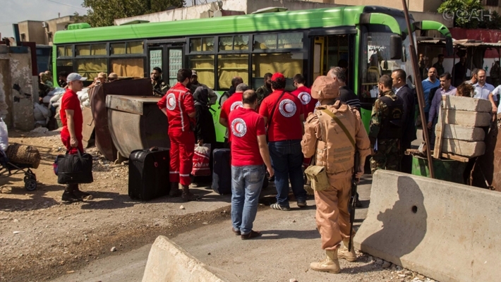 Сирия, Хомс: вооруженные боевики и их семьи покидают район Аль-Ваэр...