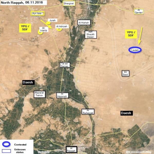 YPG взяли под свой контроль сел Jurah, Al-Wahib and Al Adriyah и также вошли в село Laqtah.