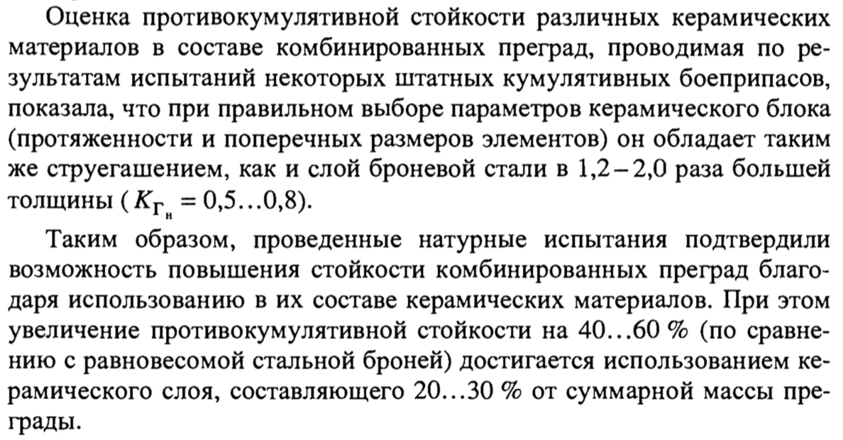 ![]() Итого. Сам по себе пакет наполнителя с керамикой может обеспечивать габаритный коэффициент 2, но преграда целиком не только из него должна состоять, иначе развалится после 1го же попадания. Тогда, чтобы гарантированно держать последнии серии Корнета танки должны иметь габарит бронирования порядка 1 метра. В крайнем случае - 900мм. Самый толстый лоб сейчас у Абрамсов M1A2 sep V2 - 863мм ¯\_(ツ)_/¯ Гуляющие по сети цифры видимо пошли из "стойкостей" всяких UO100, которые используются для расчета напрямую, а не пересчитываются к эффективности пакета с ним. |