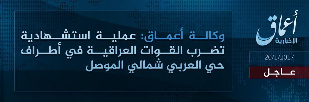 #IslamicState Claims Suicide Bombing Against #ISF On The Outskirts Of Al-Arabi Neighborhood In #Mosul. #TerrorMonitor Нажмите для увеличения -------------------- Мнение — это как дыра в заднице — есть у всех. Но «есть у всех» не означает «надо всем показывать»