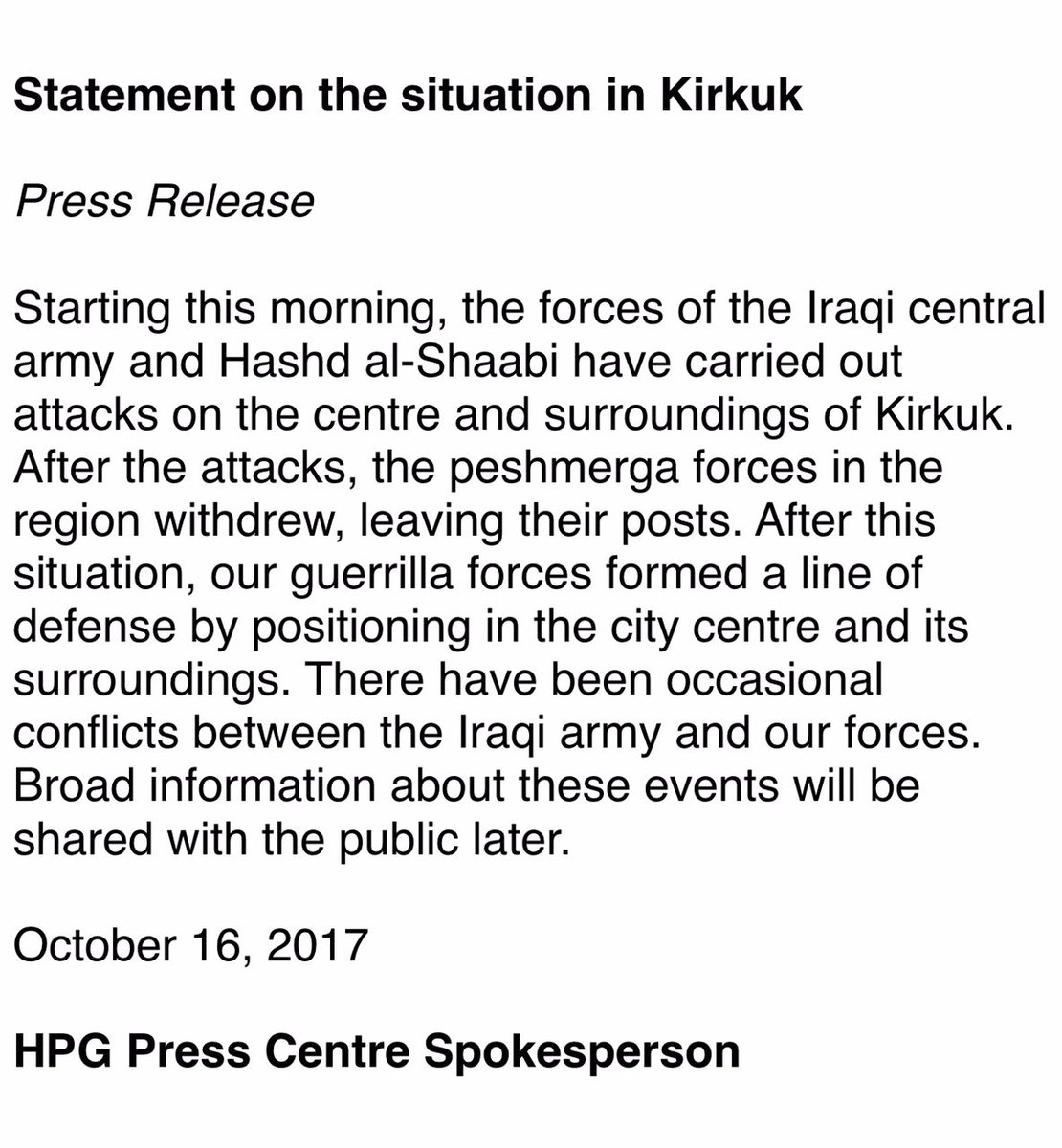 Цитата Ari Mamshae @Mamshae Читать Читать @Mamshae Еще #Peshmerga counterattack to liberate all occupied areas in #Kirkuk will start soon. Shiite militias have to surrender, flee or die. PKK -------------------- Такие как ты исподтишка тролят патриота © Madiev.