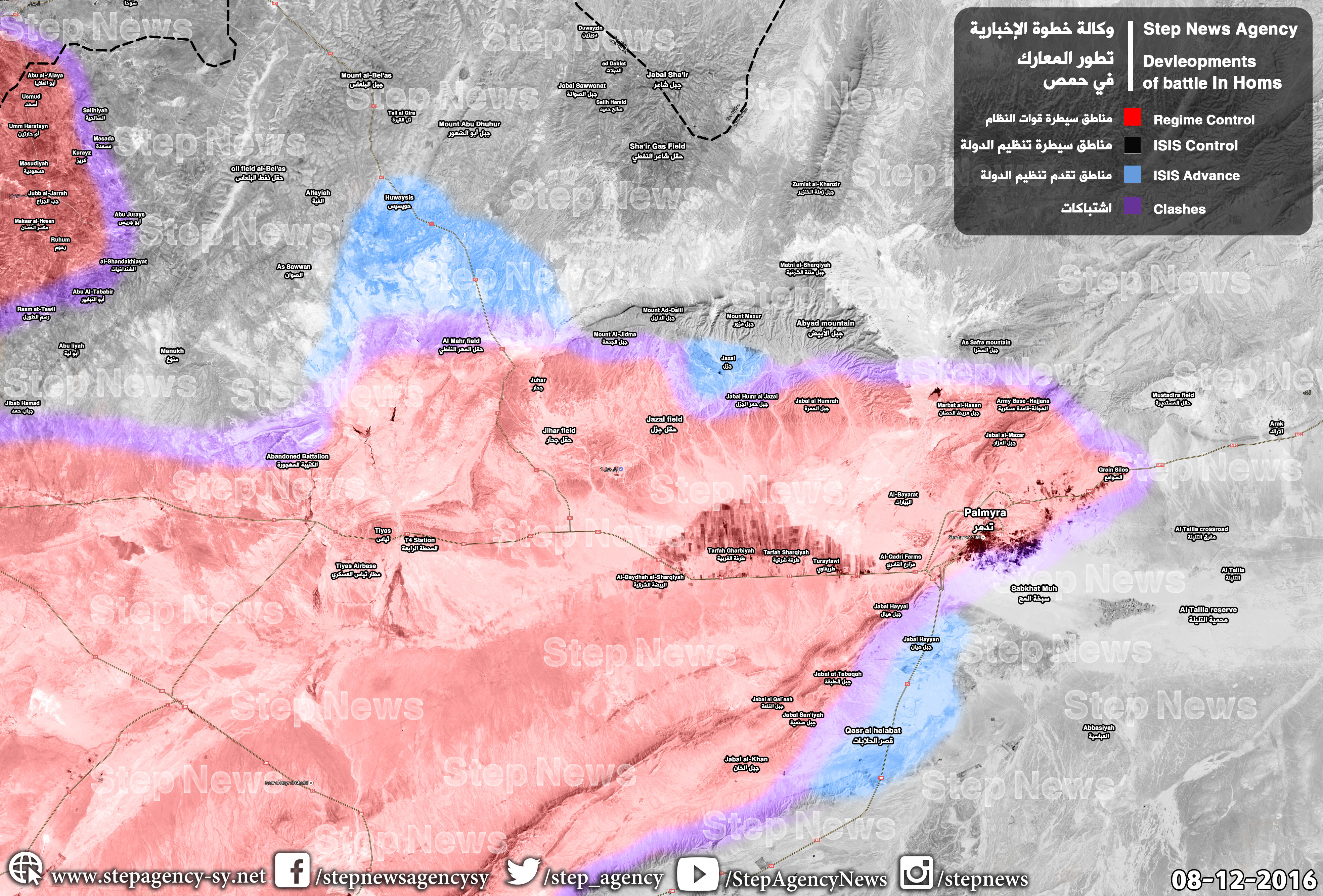 Цитата (volondv02 @ Дек 8 2016, 19:02) Да,расслабились бойцы. Hassan Ridha "Воздушные удары и жестокие столкновения между сирийской армией и национальной обороны против Daesh на южной оси города Пальмира". Я так понимаю что на южных окраинах бои идут? Лоялы постят , что Пальмира под угрозой, южная часть блоков около города захвачена.Город фактически окружён. Нажмите для увеличения -------------------- "Нужно прощать своих врагов, но не прежде, чем они будут повешены." - Генрих Гейне.