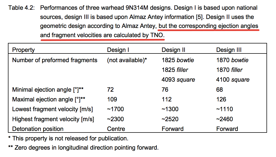 Цитата Там не скорость элементов увеличивается, а вектор вхождения меняется. В результате они и по-другому в обшивку входят и другой путь в самолете летят. Вероятность и рикошетов и непробития - как раз увеличивается. Вот, нарисовал условные варианты. Первый вариант - статика, ракета параллельна обшивке, второй - динамика, то что было на самом деле (на осколок действуют два вектора - один от боевой части, другой - от инерции ракеты и противоположного вектора самолета), третий - статика, ракета не параллельна обшивке. [attachmentid=3817] При сложении векторов скоростей вылета ПЭ в статике, вектора скорости ракеты, вектора скорости самолёта получается изменение направления вектора и его модуля. Изменение модуля вектора в статическом эксперименте имитировать нельзя. А вот изменение направления вектора как раз имитировано за счёт доворота ракеты. На тему рикошетов. Алмаз проводил серию опыты по рикошетам с 5-мм стальной пластиной (У боинга толщина обшивки 2мм и она из алюминия). По результатам экспериментов, минимальный угол встречи с пластиной для получения хоть какой-то вероятности рикошета составляет 10 градусов. Уже при 20 градусах ни одного рикошета получено не было. Цитата Нам вообще неизвестно что именно проверяли голландцы в этом эксперименте, какие начальные условия были. Может они как раз скорость и углы разлета меряли. И для измерения скорости поставили по кругу щиты, "имитирующие обшивку боинга"? (их слова) Цитата Я про это писал, передняя часть ракеты еще быстрее улетит из зоны, где окажется крыло. Задняя, скорее всего - получит тормозящий импульс, но он не настолько велик (по сравнению с собственным весом), чтобы ощутимо замедлить, да и разрушения от нее были бы больше. Передняя - улетит. Но и не беда, там белый радиопрозрачный колпак и электронная требуха всякая, пробивная сила околонулевая. А вот боковая часть с зеленой краской, которая расположена в районе БЧ, полетит не куда-нибудь, а в сторону крыла в том числе. И со скоростями, сопосоставимыми со скоростью вылета ПЭ. Цитата Лол, design 2 - это как раз вариант детонации антея. И, опять же, нет распределения осколков по скоростям. Двутавры там - самые тяжелые элементы и они как раз будут иметь скорость близкую к минимальной. Design 2 - это голландцы взяли данные по конструкции БЧ от Алмаза и самостоятельно рассчитали как углы, так и как скорости вылета поражающих элементов. Вариант алмаза - это Design 3. Да ладно Design 2. У них в Design 1 получилась минимальная скорость вылета поражающих элементов 1700 м/с. ![]() На тему распределения скоростей. Сила, с которой взрыв ВВ действует на поражающий элемент зависит от его площади, обращенной к фронту волны. Площадь "двутавра", обращенная к фронту давления - примерно 133 квадратных миллиметра. Давайте сравним с филлером. У того площадь 36 квадратных миллиметров, а масса 2,1 грамма против 8,1 у двутавра. Разница в площади - 3,7 раза, в массе - 3,85 раза. Поэтому почти в 4 раза более легкие филлеры полетят с такой же скоростью, как и тяжелые двутавры. Что касается параллелепипедов верхнего слоя (8x8x5), то на представленном Алмазом годографе хорошо видна разница по скоростям. Да, они действительно двигаются быстрее. Но не настолько, насколько вы утверждаете: ![]() Цитата Про то что в статике "скальпеля" нет - Вы же и сказали. То есть алмаз-антей, взорвав ракету над ил-76 в статике, и утверждая, что 