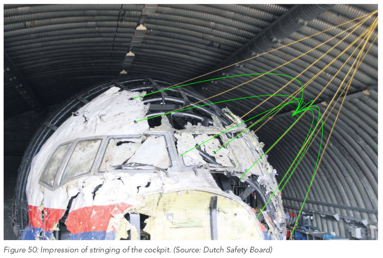 Цитата Ну да, теоретические рассуждения и некорректный эксперимент для Вас важнее простого физического доказательства в виду прутков в дырки. Слишком просто, конечно. Пофиг, конечно, на то что выходных отверстий с левой стороны нет, в салон ничего не залетало и крыло целое, главное сложность и предвзятые иллюстрации! Ещё раз про прутки, похоже вы не поняли. Нам нужно восстановить не один вектор, а два. Вектор начальной точки поражающего элемента и вектор его скорости. Пруток не позволяет восстановить их одновременно. Об этом прямо написано в отчёте TNO. Поэтому попытка указать точную точку подрыва с их помощью - профанация. Вы же без каких либо оснований заявляете о выходных отверстиях в левой части боинга (откуда?), что крыло целое (это вообще не так), что в салон ничего не залетало (для большинства найденных ПЭ голландцами НЕ было указано откуда их извлекли). Цитата Чего-то не особо много-то их там. Броня у ИЛ-а крепкая, наверное? ![]() Наверное. Советские шкафы автоматики неплохим останавливающим действием обладают. А ещё скорость ПЭ в статике поменьше, это ослабляет их пробивное действие. Тем не менее, выходные отверстия есть. Одно стекло так вообще полностью вынесло. А на боинге выходных отверстий с правой стороны нет. Цитата Ничего, что дырки с правой стороны все же есть (хотя большая часть того, где они должны быть - просто утеряна)? Одна внизу, в силовом элементе конструкции - кстати, довольно специфичной формы. И в доказательство своих вы приводите фото правого борта, на которой нет ни одного выходного отверстия? А также целые стекла с правой стороны? Цитата Дырка квадратная обтекателе двигателя не насквозь. Зато куча здоровых таких отверстий, вмятин и потертостей, которые явно не элементами оставлены. Антей не собрал все осколки передней части, чтобы утверждать что туда ничего подобного не может прилететь. Даже крупная самоконтрящаяся гайка может такой след оставить. Держите: ![]() ![]() Это выходные отверстия в силовом элементе конструкции, расположенном за носком воздухозаборника. То есть это уже вторая преграда, которую пробили данные фрагменты. В носовой части таких поражающих элементов нет. На дальности более 20 метров даже не все ГПЭ могут пробить 2 преграды. Цитата А Вы не расписывайте, вы нарисуйте один раз - сами удивитесь... И чему я должен удивиться? ![]() В динамике и с других точек обзора тут: https://youtu.be/M1n7S0__2pc?t=30m20s |