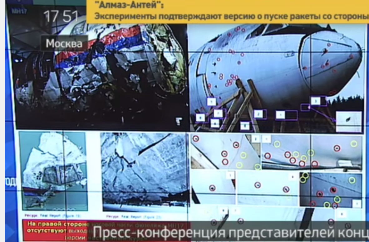 Без дополнительной информации это невозможно в принципе, потому что картина повреждений у нас трехмерная (координаты пробоин), а модель необходимо восстановить шестимерную. Вот эти самые палки прекрасно втыкаются в те же самые пробоины из множества других точек подрыва. Чтобы устранить не однозначность в паре нужно воспользоваться какой-то дополнительной информацией. Можно было бы воспользоваться информацией о точках рикошета (рикошеты не могут быть при углах входа 20 градусов и более), но тогда это будет противоречить голландской версии точки подрыва. Поэтому данный факт голландцы проигнорировали. Цитата Все равно на кабину boeing-777-200ER плохо похоже. Она обычно такая конусообразная, с окнами, консолями и панелями... Ничего, что под крышей у боинга 777-200ER - охрененная панель управления, с металлическим основанием и слоем композитной отделки? У Ил-86 она тоже есть, но в разы меньше Ну так давайте посчитаем. Я вот слово "охрененная" плохо понимаю, особенно в контексте того что нормативная бронепробиваемость ПЭ 26мм по нормали. А шкаф автоматики на Иле поражающие элементы пробили. Цитата Я там больше отверстий отметил, смотрите внимательнее. И почему они не могут быть таковыми? Дырки в стеклах тоже не нравятся, не той формы? Давайте вы для начала отметите только те, что по вашему мнению являются выходными отверстиями поражающих элементов. Потому как части корпуса ракеты НЕ могли пробить боинг насквозь. И отдельно по стеклам - покажите фоточку покрупнее. Я на вашей в обозначенных местах пробоин НЕ вижу. Цитата Как раз задний фронт скоростных параллелепипедов (тех, что вместе с двутаврами без рубашки из кубиков, в задней части) там пройдет: То есть вы утверждаете, что никаких двутавров в БЧ не было? Вот это поворот. А по поводу их пути внутри воздушного судна - посмотрите где и как они должны были входить и есть ли в этом месте пробоины. |
