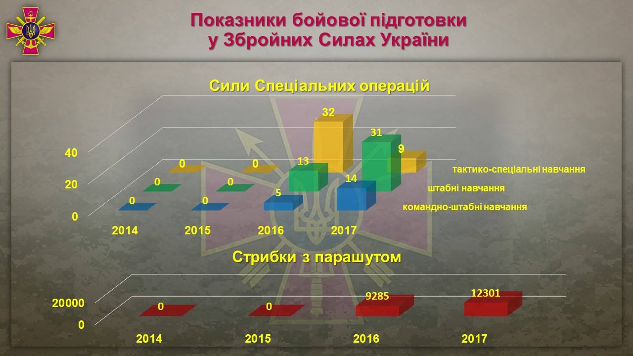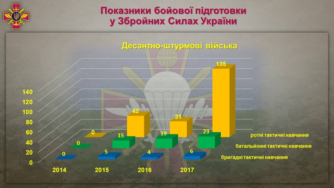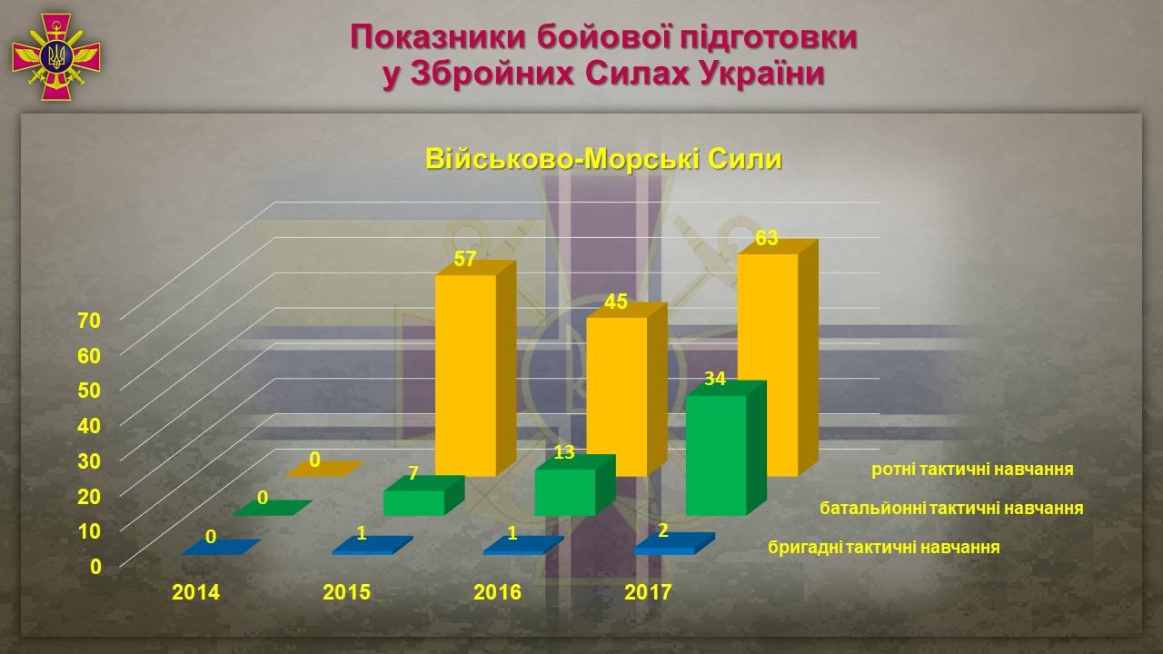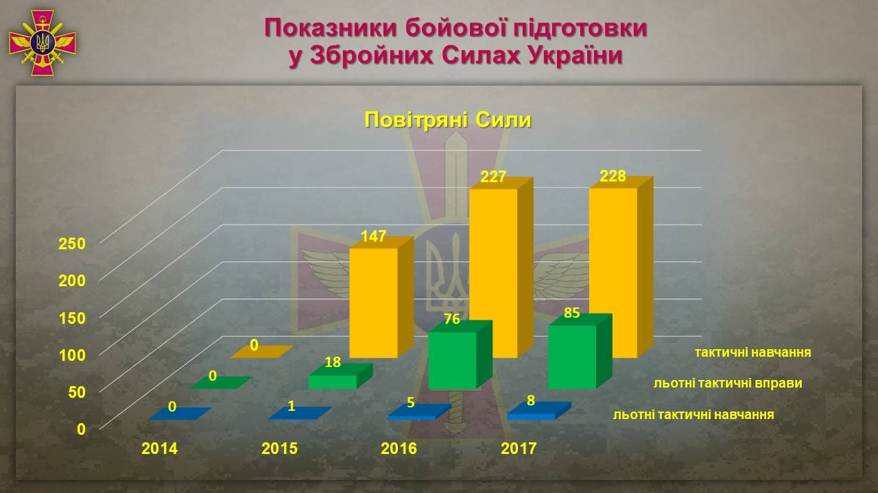 Динамика изменения показателей боевой подготовки ВСУ в 2014-2017 гг.