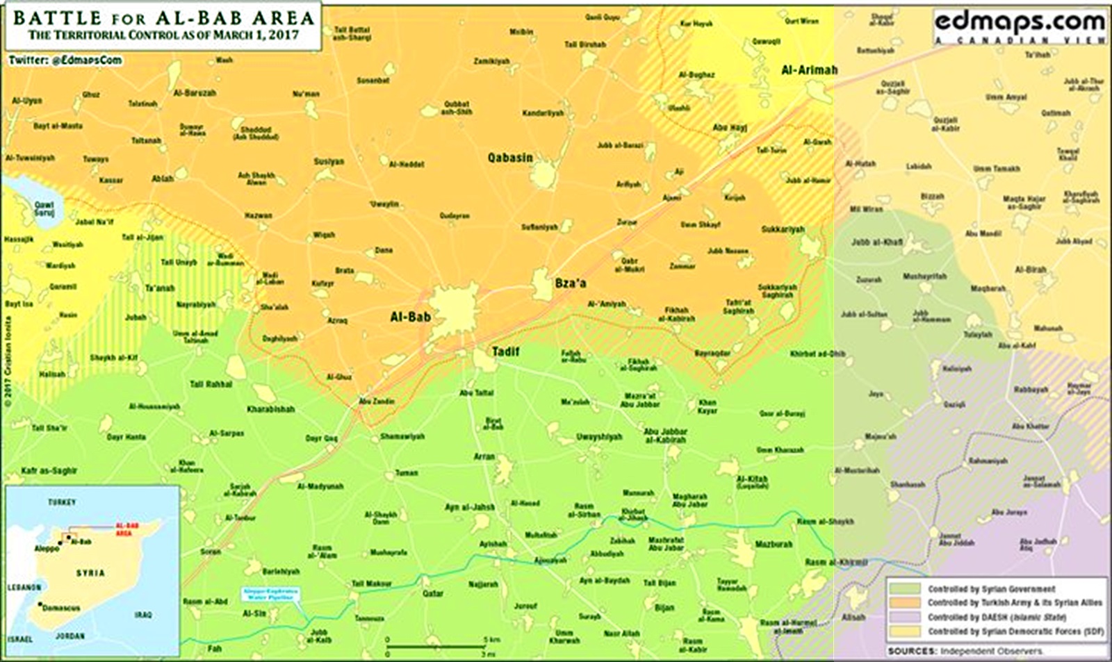 #Syria #war East #AlBab #map March 1 10 pm after #DAESH collapse #SAA #SDF #EuphratesShield #TurkishArmy #FSA Нажмите для увеличения -------------------- "Нужно прощать своих врагов, но не прежде, чем они будут повешены." - Генрих Гейне.