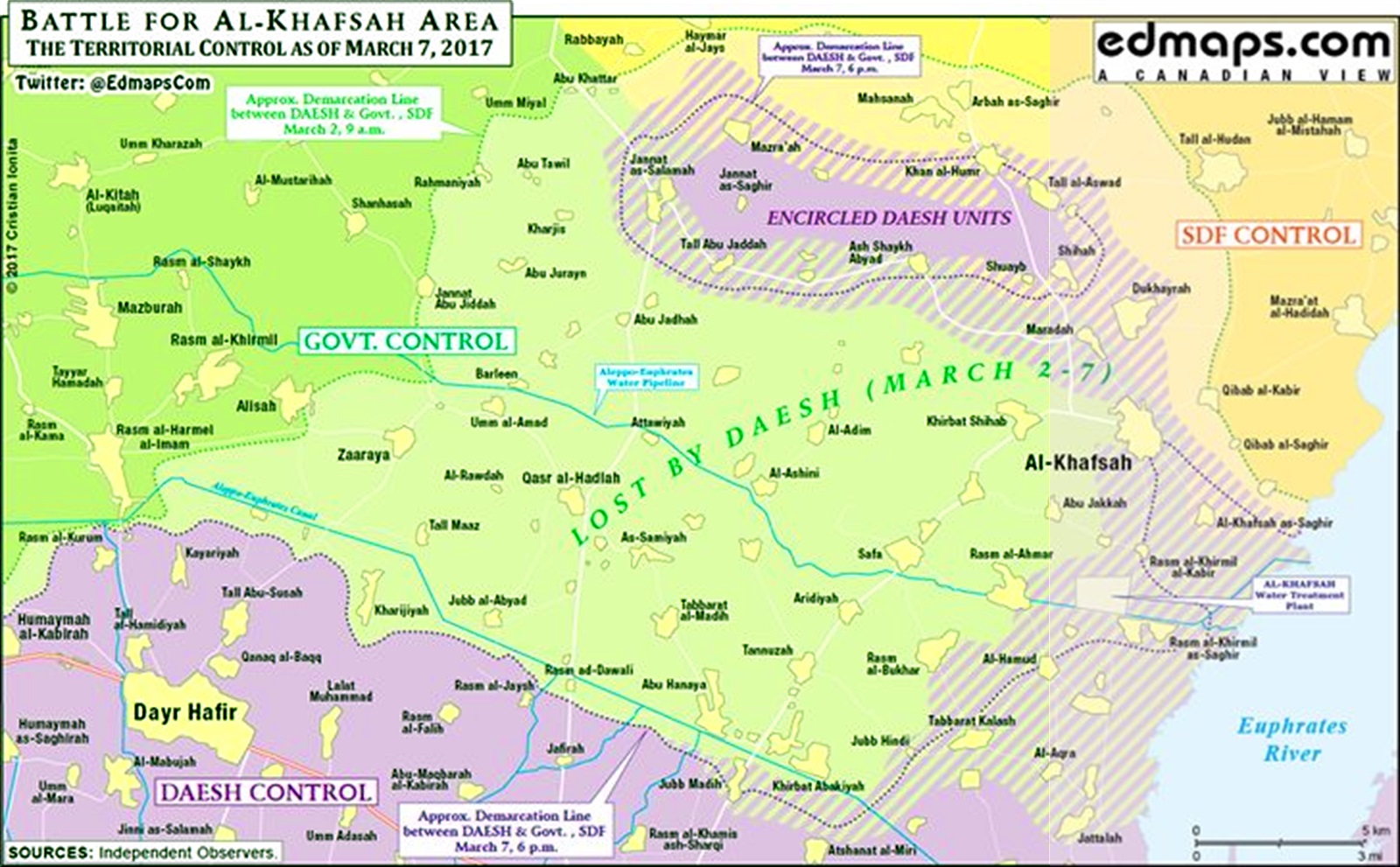 #Syria #battle for #Khafsah updated #map March 7 #SAA retook #Aleppo-#Euphrates water pipeline Нажмите для увеличения -------------------- "Нужно прощать своих врагов, но не прежде, чем они будут повешены." - Генрих Гейне.