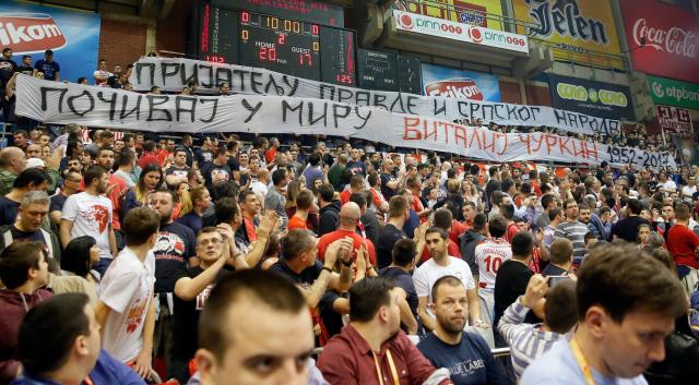 Красная Звезда болельщиков в матче с Галатасараем в Евролиге разработал знамя в честь покойного российского дипломата Виталия Чуркина.