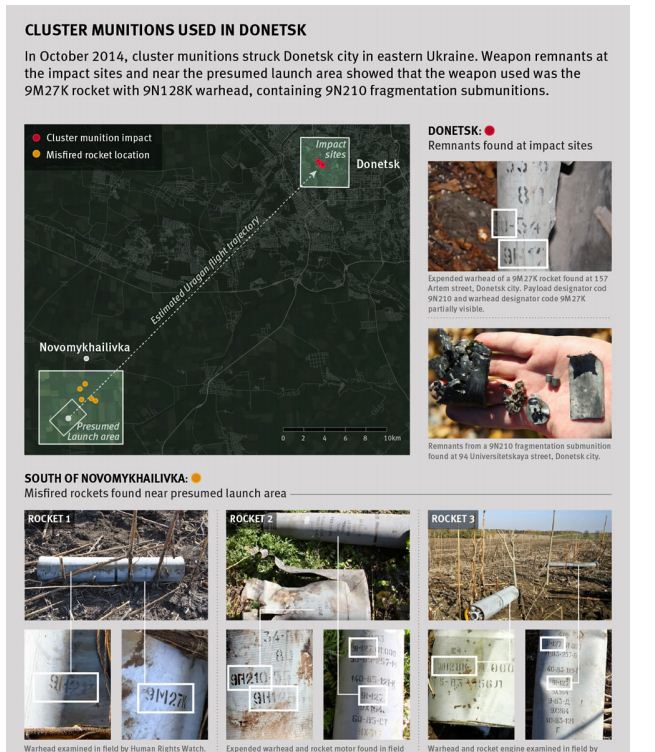 ( @ 10 2019, 17:41) . - 6- , , . - -, , - ? ? KYIV 3 February 2015 At approximately 18:15hrs and 22:45hrs on 27 January, the SMM, based in Luhansk city centre (Lugansk Peoples Republic LPR-controlled), heard intensive incoming shelling and impact explosions about 5km west of its location. On 28 January, upon receipt of information about shelling from the Russian Federation Armed Forces staff, assigned to the Joint Centre for Control and Co-ordination (JCCC) in Luhansk city, the SMM departed to the south-western suburbs of the city at 10:30hrs. Upon their arrival at 10:40hrs on 28 January the SMM observed that a large residential area in the Artemivskyi district of Luhansk city, 6.6km south-west of the SMMs location, a rectangular area measuring approximately 1.5km by 1.3km, had been impacted by rockets. The centre of the affected area around Izvestkova Street (7.5km south-west of Luhansk city centre) was most impacted. The SMM observed the affected area along Izvestkovaya Street, Korolenko Street, Dekabristiv Street, as well as at Michurina Street and Sumska Street - a residential area consisting of small, detached houses. The SMM spoke to the owners of the properties and other local residents who said that they had been shelled twice on 27 January, first at about 18:10hrs and at about 22:45hrs. The SMM saw considerable damage caused by the impacts of rocket shelling, such as broken windows, fences, gates and walls. The SMM assessed that some of the damage to the buildings, e.g. a series of parallel rows of strike marks on a gate and wall, were consistent with damage typically caused by shrapnel elements from cluster munition. According to the SMMs assessment, a hole in a roof of a house was caused by the impact of what appears to be a bomblet, with small calibre. The SMM discovered parts of rockets, including engines, fins and cargo compartments, in the front and backyards of several houses; the cargo compartment in particular is typical of a rocket carrying cluster munitions. Some parts sighted by the SMM at the impact site (1.5 cm white metal fragments, 6 by 3 cm black metal fragments of bomblets cases) are typical for cluster munition. The SMM identified them as parts consistent with 9M55K model Smerch rockets (calibre 300mm). The SMM observed a crater (diameter approximately 4m, depth approximately 3m) at the backyard of the house located at Dekabristiv Street 106 which had been caused by the explosion of a Smerch rocket, according to the SMMs assessment. The SMM measured by compass the angle between north and the axis of cargo remains. The SMM measured the incoming azimuth for the three cargo remains of the Smerch rockets, indicating a general incoming north-north-west direction. |