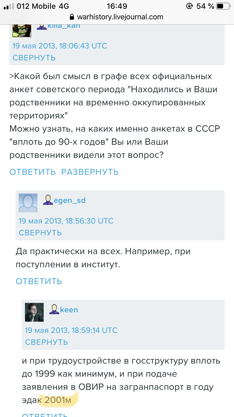 Цитата (Pampa @ Дек 8 2019, 15:46) Говорят 70 миллионов оказались в оккупации. Но тут такой вопрос, до какого года в анкетах присутствовал вопрос о нахождение на оккупированных территориях или о наличии таковых родственников? В некоторых местах до 2001 как минимум ![]() https://warhistory.livejournal.com/2342795.html -------------------- Zа макееVский рОдничок