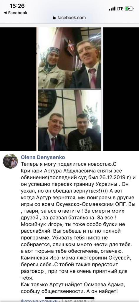 Цитата (Саша Белый @ Сегодня, 14:51) Именно поэтому - с мая 2018 года ДНР его выставила в списки на обмен, потому что уголовщина просто напросто и к тому же рафиук саупсэм невиноуат Товарищ, люди тут как бЭ при памяти. И помнят разборки, как с Окуевой, так и с Осмаевым. Ну а то, что украинским судом он был признан его виновным в незаконном обращении со взрывчатыми веществами и подлоге документа - это сашок бэ опять же "забыл" -------------------- Ценность любого оружия определяется успешностью его применения и готовностью к использованию в нужном месте и в нужное время.