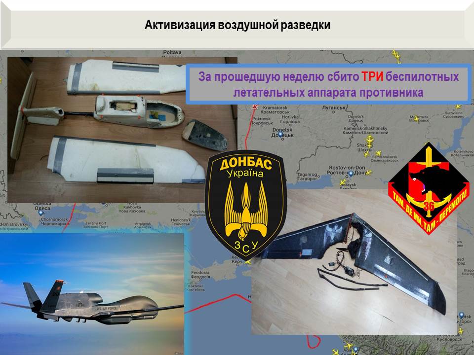 За истекшую неделю в небе Донбасса сбито три БЛА 36-ой ОБрМП и 46-го батальона "Донбасс"