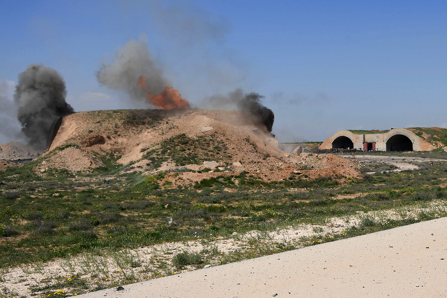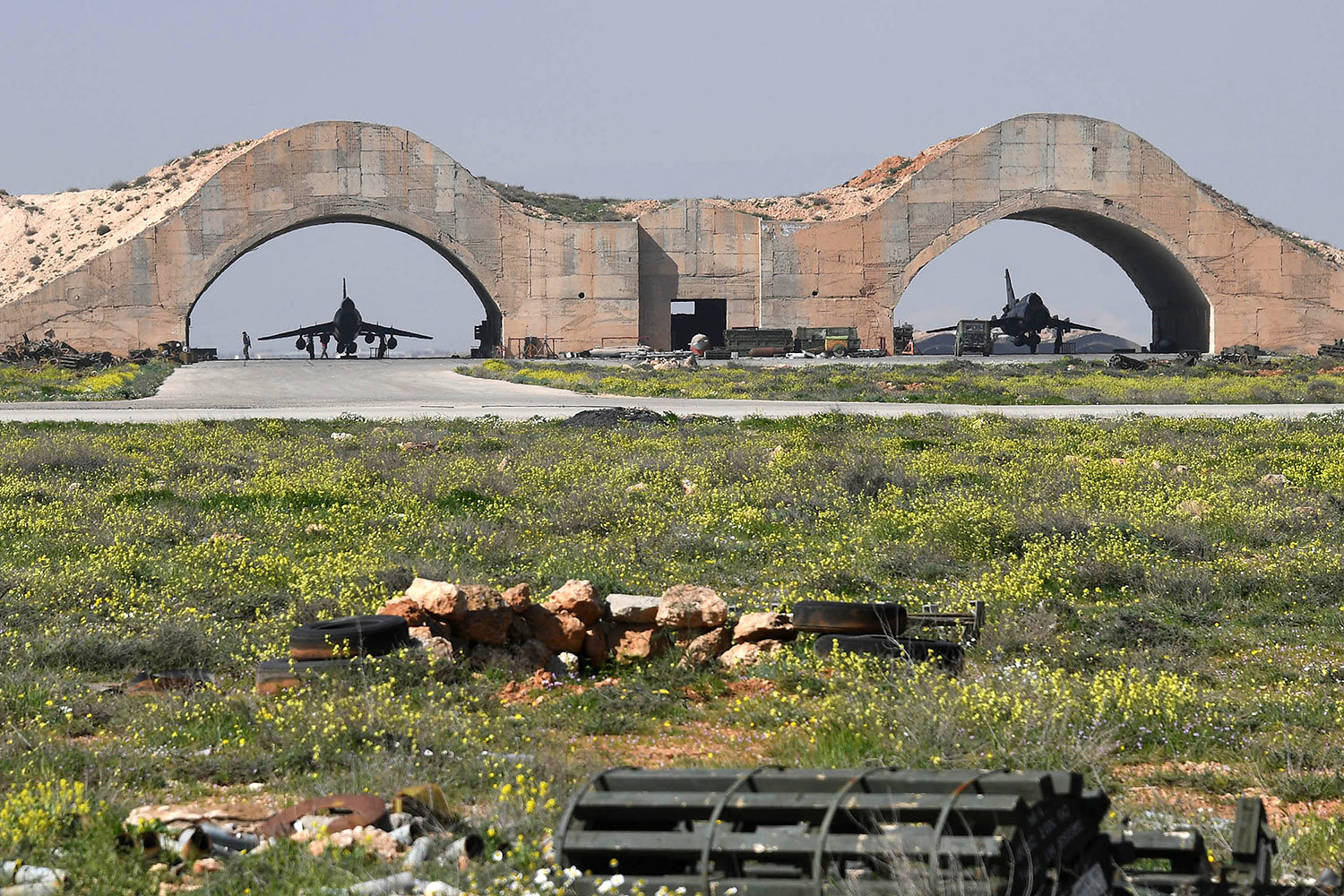В ЖБУ № 21 сгорело два самолёта: ![]() ИМХО вот оно: http://old.wikimapia.org/#lat=34.4927833&l...93&z=18&l=1&m=b Опознаётся по огневым точкам (?) на крышах обоих укрытий. Ну и линия визирования через арку правого ЖБУ на домики на заднем плане вроде совпадает: ![]() Целое ЖБУ без номера с двумя Су-22, на заднем плане видно уничтоженное ЖБУ: ![]() ИМХО вот это укрытие: http://old.wikimapia.org/#lat=34.4974123&l...25&z=17&l=1&m=b А на заднем плане, соответственно, вот это: http://old.wikimapia.org/#lat=34.4936189&l...27&z=17&l=1&m=b P.S. Фотки взял отсюда, там ещё есть: https://www.vedomosti.ru/politics/galleries...rii-posle-ataki |