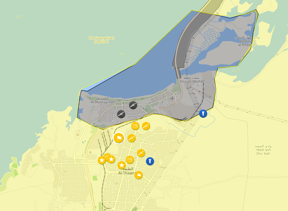 Сегодня SDF дожму чёрных и освободят Табку. GIF: battle of Tabqa, 90% completed, only Dam is under IS control . Нажмите для увеличения -------------------- ЖИВУ БЕДНО, ВИНО ПЬЮ СТАРОЕ, СЫР ЕМ С ПЛЕСЕНЬЮ, И МАШИНА БЕЗ КРЫШИ.