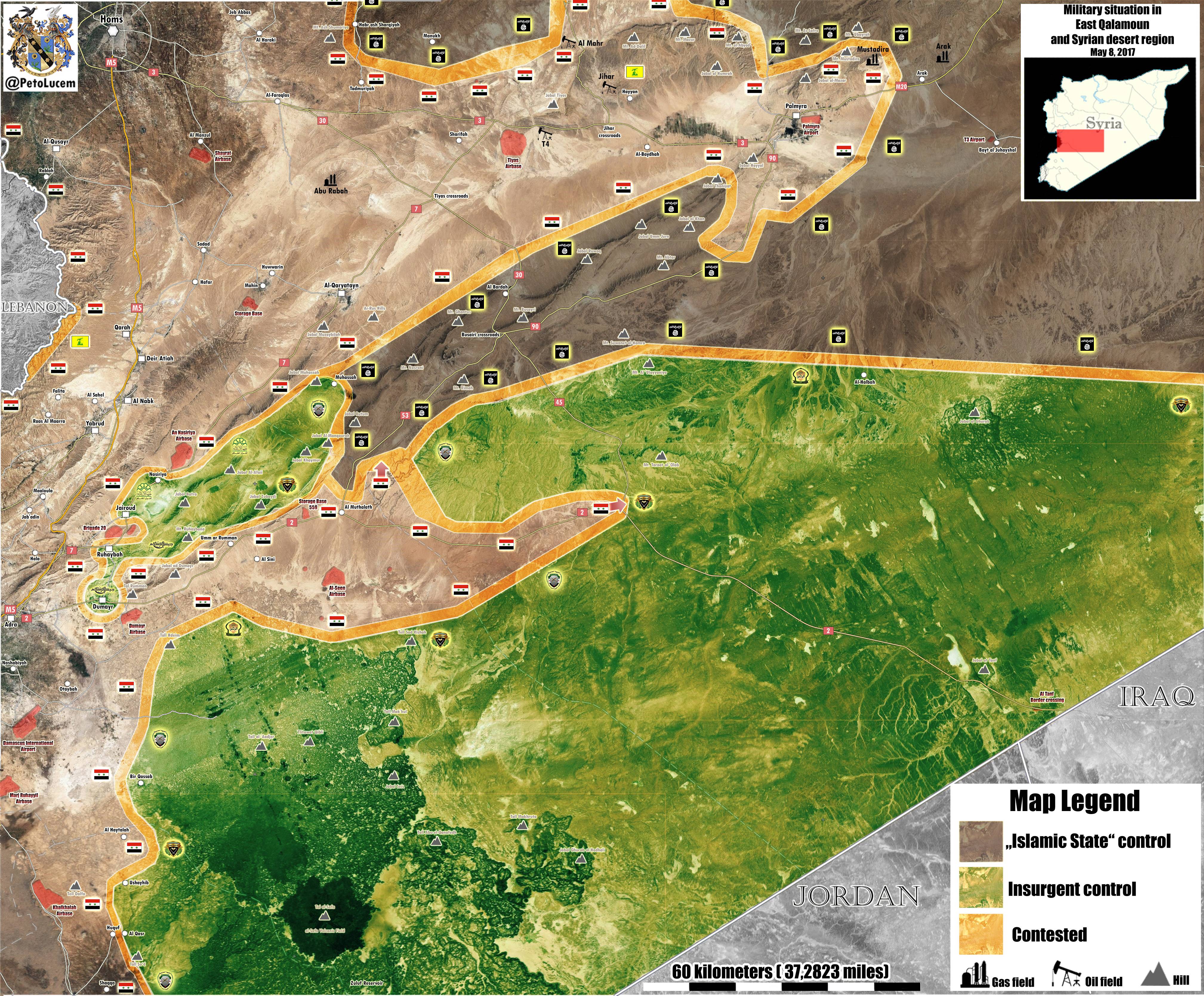 САА в 50 км от соединения В Пальмиа ,ААрмия Ислама в осаде на востоке Qalamun.