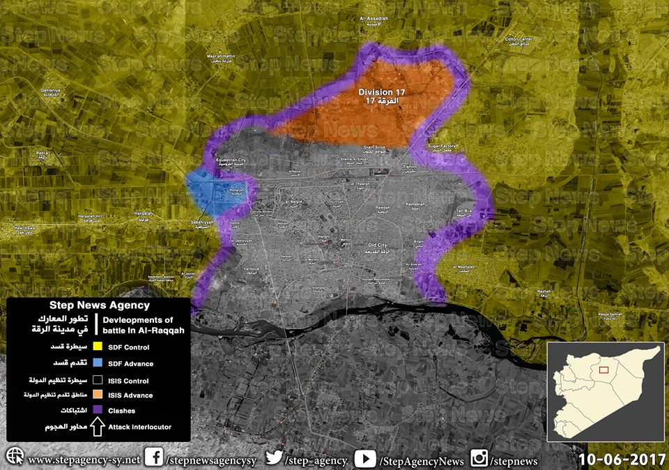 Raqqa map. YPG capture 2 districts and attacks Romaniah district. 10/6/2017