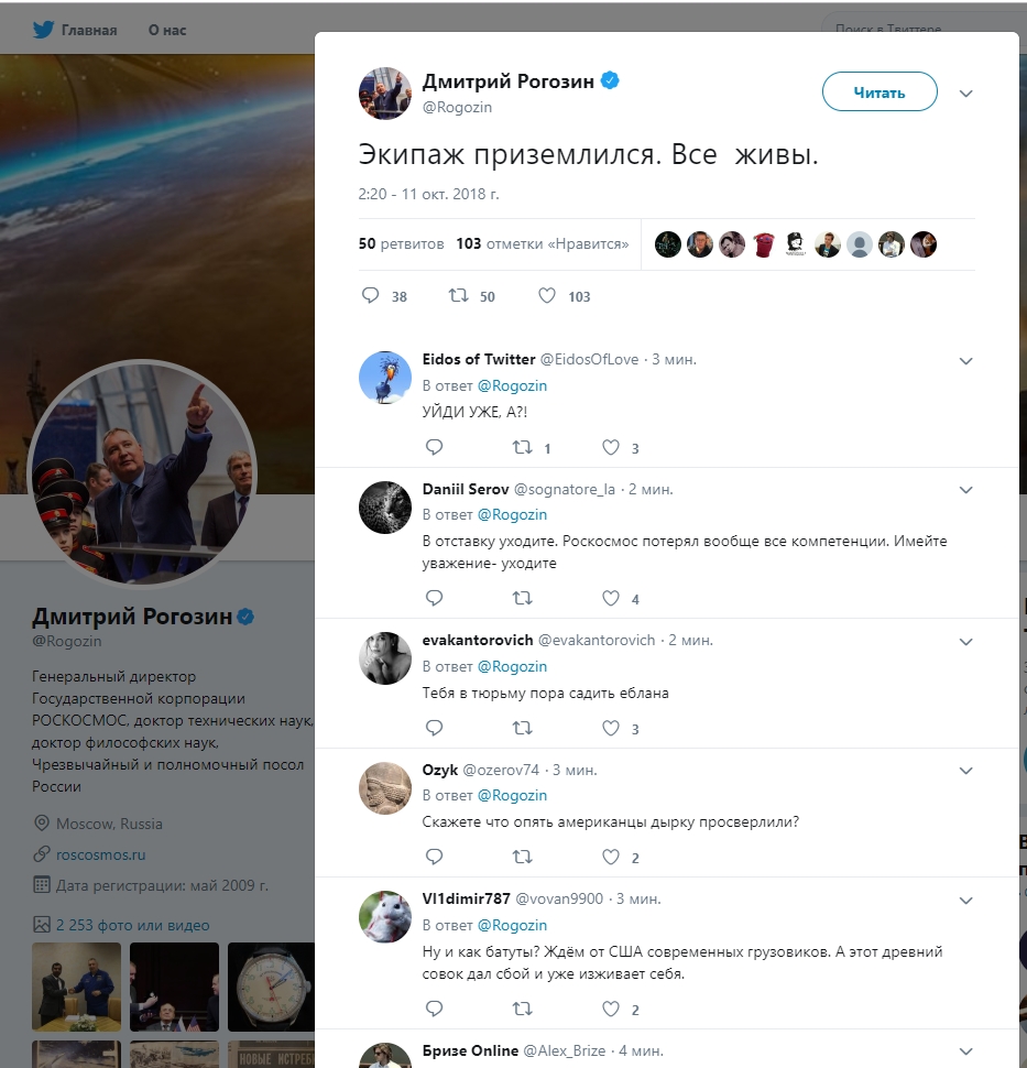 Цитата (Orlenard @ Окт 11 2018, 11:50) Ну, вот и на пилотируемой космонавтике начались аварии Авария ракеты «Союз»: экипаж приземлился в Казахстане. Хроника https://meduza.io/live/2018/10/11/avariya-r...gn=browser_news -------------------- Те, кто поддерживает войну России против Украины - уёбки и моральные уроды!!!