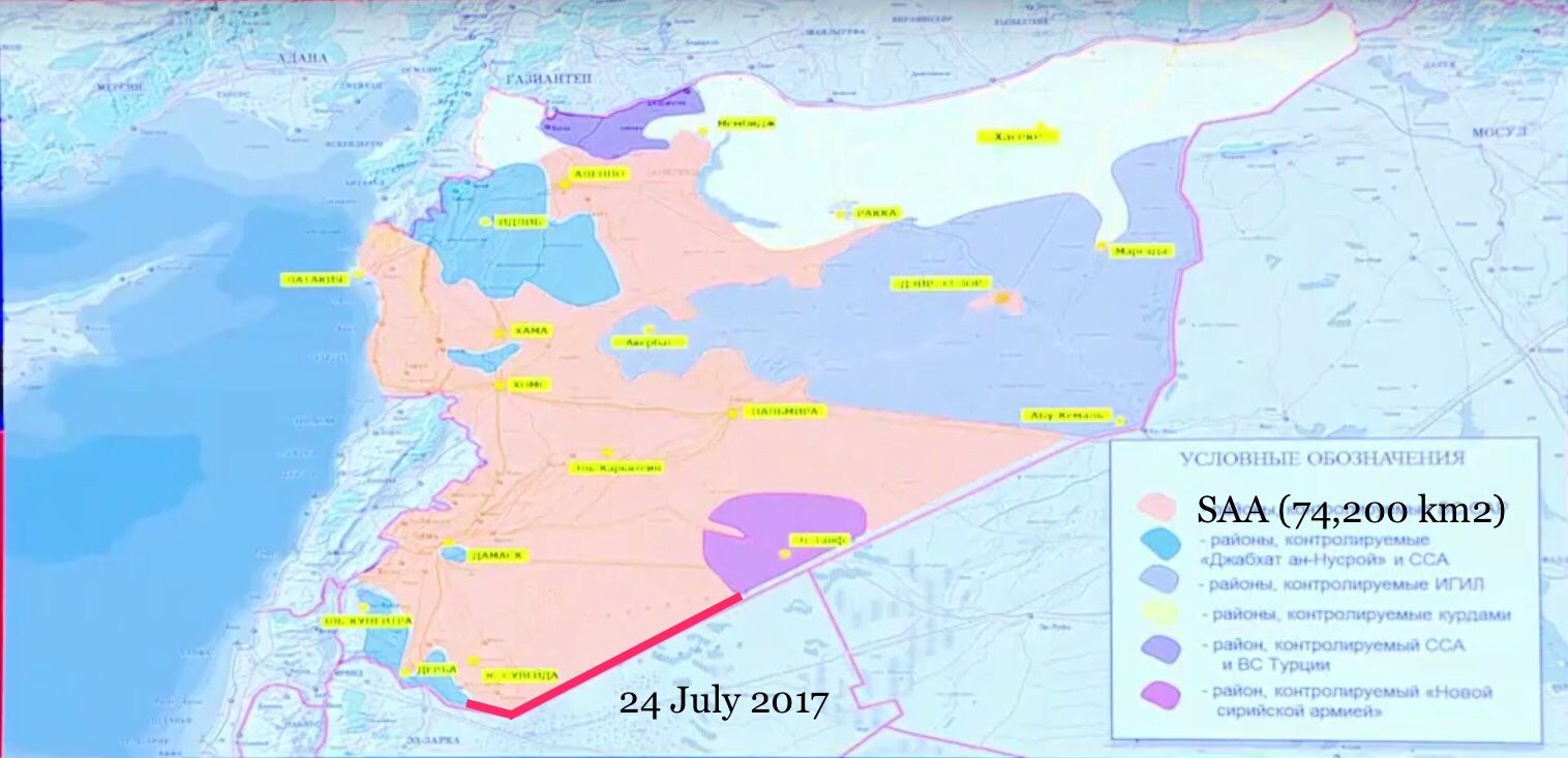 По данным космонавтов, Т2 за САА, 150км границы с Ираком за САА, 26 км до Abu Kamal