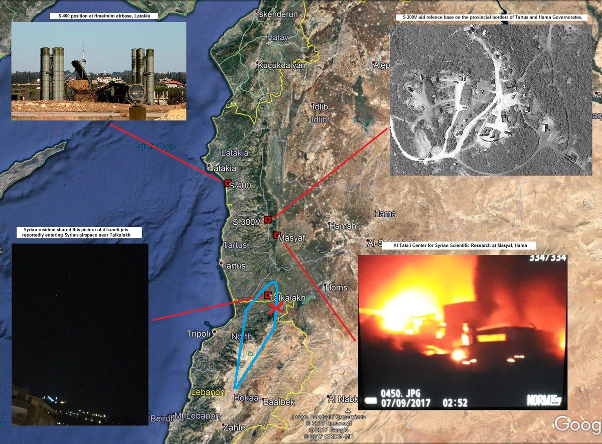Тут мне эксперты помогли))) возможный сценарий удара (синим - маршрут ударной группы, крестиком -зона пуска) , ну и одновременно глаза открыли - почему сирийцы в Ливане околачивались все время: оказывается без постов в долине Бекаа они беззащитны для ударов с воздуха, правда добавили, что если знаешь время и сектор и действительно на той точке стоит С-300, то на развороте можно попытаться поймать - правда поражение будет уже над Ливаном, а средства поражения уже нет, т.к. ПУ находятся слишком близко к объекту и с значительным превышением. Гладенько да? и никто не виноват))) (Рисовал как умел - траектория разворота конечно более пологая)