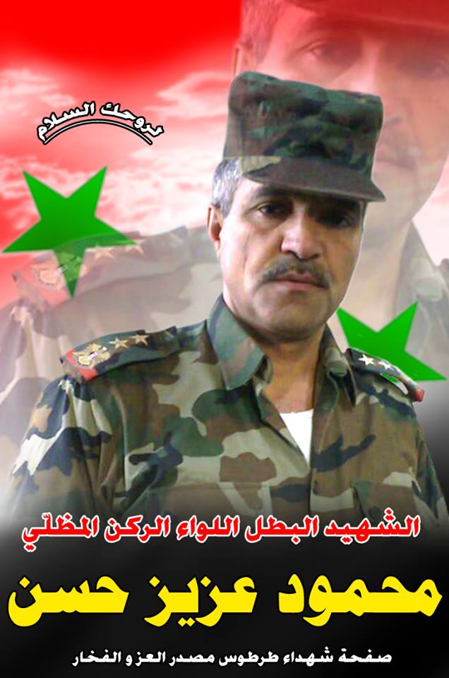 Цитата (Кирилл @ Ноя 10 2017, 23:21) Бригадный генерал Ясин Салим Хассун - начальник "отдела сигналов" 17-й дивизии - убит 29.07.2014 вероятно после боёв за базу 17-й дивизии. Бригадный генерал Джихад Хабиб Каддар из 17-й дивизии - убит 03.08.2014 вероятно в бою за базу 93-й бригады. http://www.shahedon.com/2014/07/%D8%AF%D8%...A7%D9%84%D8%A7/ http://www.all4syria.info/Archive/160285 Может есть кто-нибудь из форумчан (может Фахед) кто знает арабский язык и правильно переведёт по ссылкам должность генерала Ясина Хассуна? Подтверждение сообщения на асадовской странице. https://www.facebook.com/LOVE.SYRIA.BASHAR....?type=3&theater |