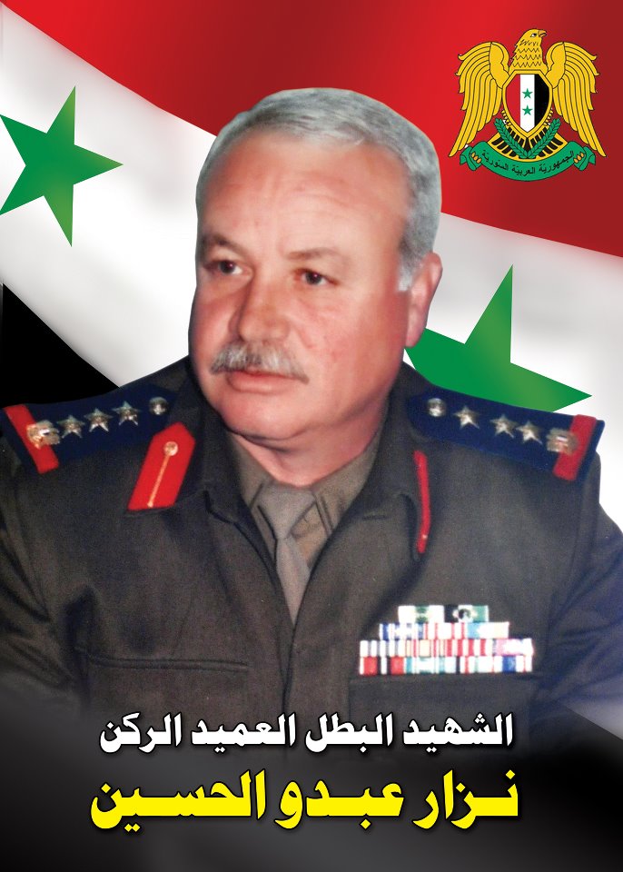 Родился в 1955 году. В 2011 году комадовал 132-й бригадой в Дераа, участвовал в расстреле демонстраций в Дераа. Погиб 03.03.2013 в боях в Дераа. https://www.facebook.com/mekdad.hosamo.9/po...126110164237924 https://www.facebook.com/photo.php?fbid=147...&type=3&theater https://www.facebook.com/photo.php?fbid=164...&type=3&theater https://www.facebook.com/ahmadalsore2/posts/492420657484540 http://www.dampress.net/chuhada/?page=show...d=10875&lang=ar https://www.facebook.com/news.ntework/photo...?type=3&theater https://www.facebook.com/Daraa.Tanks/posts/490118004377960 Нажмите для увеличения Присоединённые изображения |