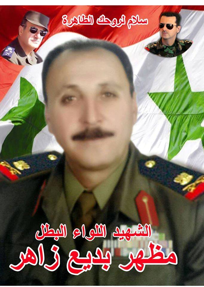 Бригадный генерал Мажар Бади Захер, заместитель руководителя комитета по безопасности в Алеппо (и командир артиллерии и ракетных войск в Алеппо) - погиб 03.02.2016 в боях при прорыве осады сёл Нубль и Захра.