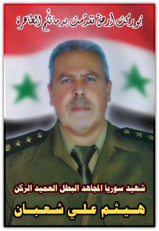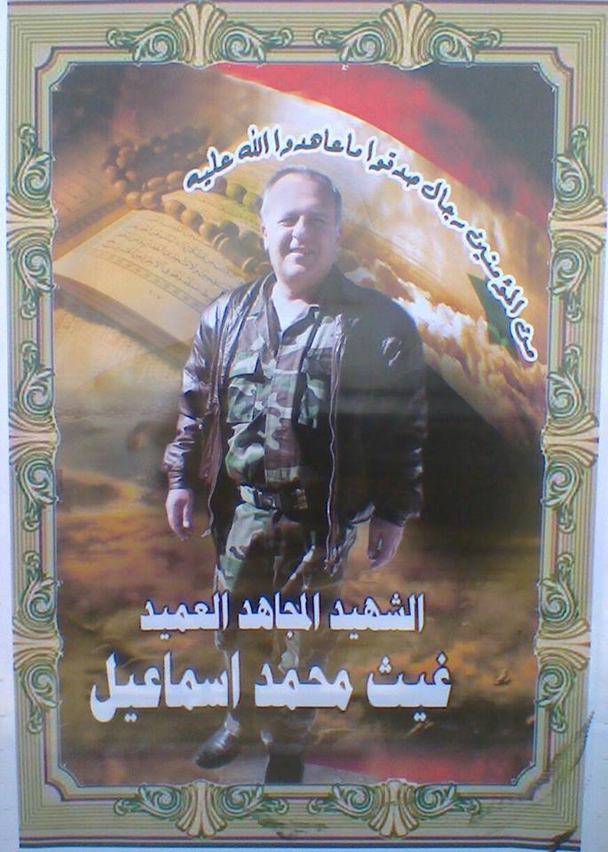 Родился в 1969 году. Погиб 01.03.2015 в боях за Дейр эз-Зор. Посмертное звание бригадный генерал. https://www.facebook.com/photo.php?fbid=173...02954831&type=3 https://www.facebook.com/photo.php?fbid=173...31&type=3&ifg=1 https://www.facebook.com/Jaramana2014/photo...?type=3&theater https://www.facebook.com/permalink.php?stor...476242682595616 Присоединённые изображения |