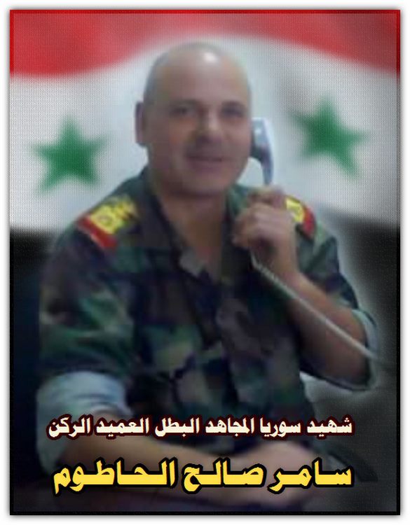 Цитата (Кирилл @ Сегодня, 21:16) Полковник Самер Мунир Хаммуд. Командир "группы пожарных сил" или "мотоциклетной группы" при попытке деблокировать госпиталь в Джиср аш-Шугуре. Погиб 23.05.2015 в боях под госпиталем. Посмертное звание бригадный генерал. Родилмя на латакийщине, деревня Бсисин, район Джабле, погиб при прорыве. Я так понял, он был командиром той группы прикрытия, которая осталась задерживать боевиков ценой своих жизней. Если помнишь, ходила еще переписка одного из солдат с отцом за пару часов до прорыва. -------------------- Такие как ты исподтишка тролят патриота © Madiev.
