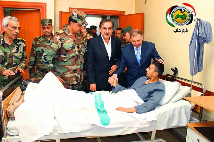 Генерал-майор Вахиб Хайдар, командующий войсками Северного региона. Губернатор Алеппо Хусейн Диаб. Секретарь партии БААС по Алеппо Фадель Наджар. Посещение госпиталя и возложение венков. https://www.facebook.com/permalink.php?stor...451187555176952 https://www.facebook.com/permalink.php?stor...486636404693695 https://www.facebook.com/fa955/posts/976353869167496 https://www.facebook.com/permalink.php?stor...100006441422662 https://www.facebook.com/photo.php?fbid=783...41846277&type=3 В мае 2015 года генерал-майор Вахиб Хайдар командовал войсками в провинции Идлиб. Попытка деблокировать госпиталь в Джиср аш-Шугуре обернулась тяжёлыми потерями офицеров и солдат САА. Был снят с этой должности 27.05.2015 и его заменил генерал-майор Джихад Мухаммед Султан. https://www.facebook.com/hafezalassdalassd/...870887313003938 https://www.facebook.com/permalink.php?stor...100006185988829 https://www.facebook.com/N.N.Eagle.Syrian/p...493109014171562 https://www.facebook.com/alhmery.kfelon.new...876600402386041 https://www.facebook.com/alnamer.syria58568...699060816872807 Нажмите для увеличения |