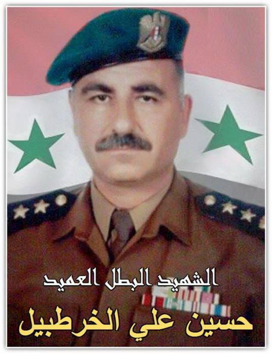 Родился в 1966 году. Погиб 24.04.2014 в боях за высоту Телль ал-Джабия у г.Нава (провинция Дераа). Посмертное звание бригадный генерал. https://www.facebook.com/1510038929218316/p...?type=3&theater https://www.facebook.com/watan.shdaa/photos...?type=3&theater https://www.facebook.com/watan.shdaa/photos...?type=3&theater https://www.facebook.com/watan.shdaa/photos...?type=3&theater https://www.facebook.com/Syrian.Martyrs4/ph...?type=3&theater https://www.facebook.com/1465654683726673/p...?type=3&theater https://www.facebook.com/permalink.php?stor...465654683726673 https://www.facebook.com/permalink.php?stor...465654683726673 Фэйсбук-страница в его память. https://www.facebook.com/%D8%AD%D9%8A%D9%8C...10038929218316/ Нажмите для увеличения |
