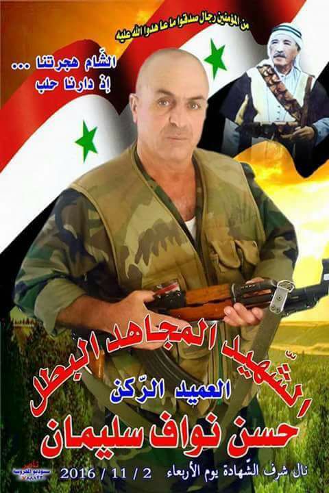Погиб 20.11.2016 в боях в предместьях Дамаска. Посмертное звание генерал-майор. https://www.facebook.com/JABLEHSYRIA3/posts/558221147704772 https://www.facebook.com/albahlulyah/posts/1827019854183436 https://www.facebook.com/sahnaya/posts/1056647874443687 https://www.facebook.com/BaladnaNews.net/po...578918935638524 https://www.facebook.com/SyriaAbove/posts/1445534758808937 https://www.facebook.com/MotherSyria/posts/645417672250003 https://www.facebook.com/photo.php?fbid=116...&type=1&theater Нажмите для увеличения |