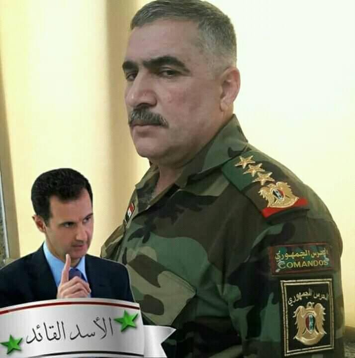 Командир отдела "государственной безопасноти" и командир группировки САА в лагере Хазанат (вероятно из частей 47-й бригады). Погиб 25.05.2014 в боях за лагерь Хазанат. Посмертное звание бригадный генерал. https://www.facebook.com/msyaf.news/photos/...?type=3&theater https://www.facebook.com/permalink.php?stor...417180391881969 Накануне приближающейся битвы за Хан-Шейхун лоялы вспоминают о нём. https://www.facebook.com/tigerforces01/phot...?type=1&theater https://www.facebook.com/2003551886594973/p...?type=3&theater https://www.facebook.com/172075466751348/ph...?type=1&theater https://www.facebook.com/photo.php?fbid=165...&type=1&theater Присоединённые изображения |