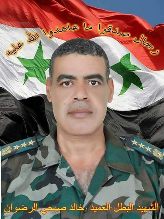Погиб 21.03.2018 в боях под Хаджар ал-Асвадом. Посмертное звание бригадный генерал. https://www.facebook.com/msyaf.news/photos/...?type=1&theater https://www.facebook.com/kask.ya.watann/pho...?type=1&theater https://www.facebook.com/latakia.now/photos...?type=1&theater https://www.facebook.com/1240344586091500/p...?type=1&theater https://www.facebook.com/240733379756332/ph...?type=1&theater https://www.facebook.com/476577406036889/po...77737515920877/ Здесь на фото с личным составом. https://www.facebook.com/240733379756332/ph...?type=3&theater Нажмите для увеличения |