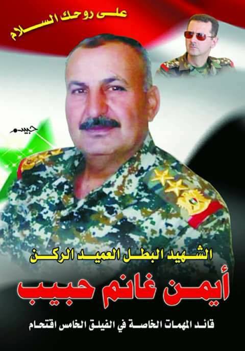 Полковник Айман Ганем Хабиб, командир войск спецназа 5-го корпуса - погиб 19.07.2017 в той же засаде на дороге Хама-Итрия.
